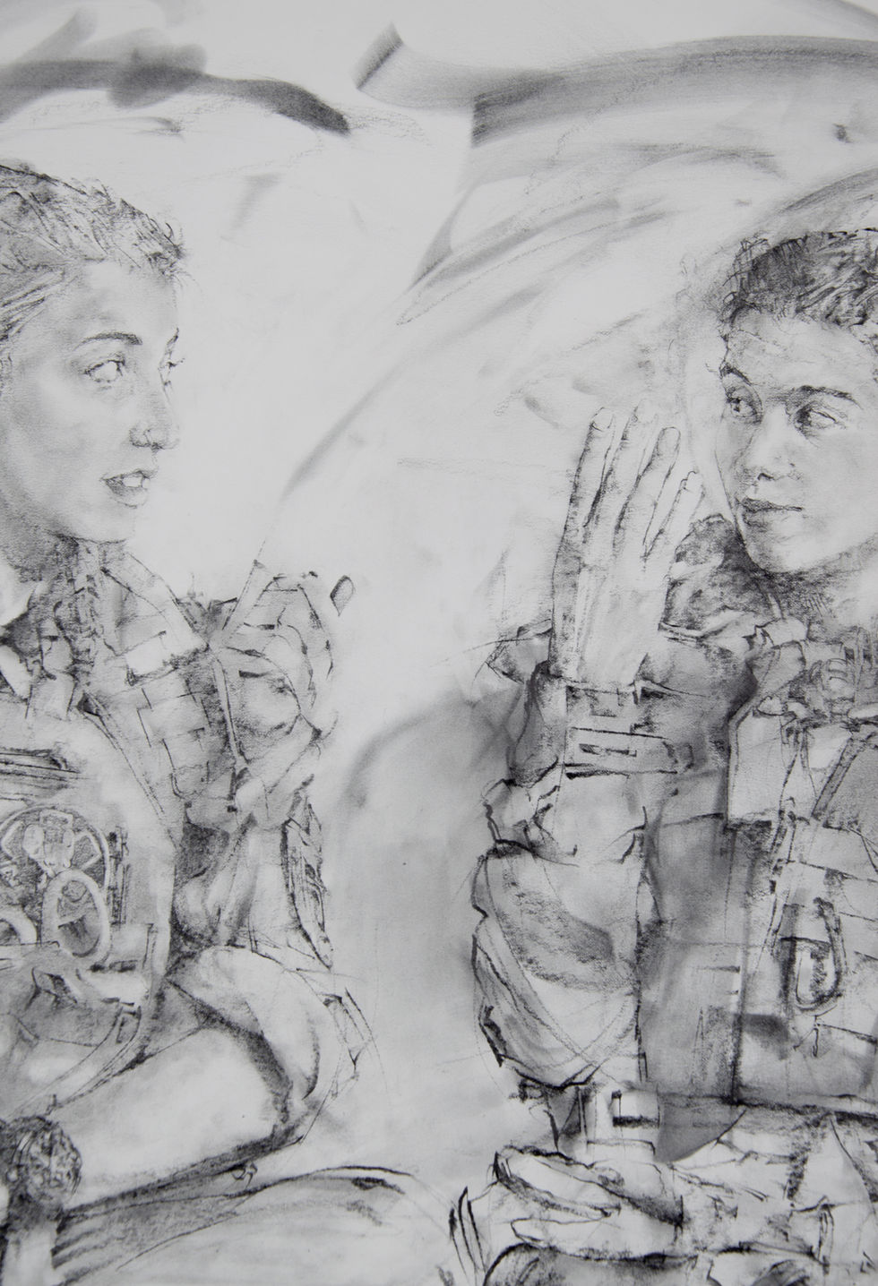 24D-012 Study For Ukrainian Soldiers - ДІВА /ОПЕРА (Nataliya Baran / Olia Lahoida) 72 x 112 cm 30 x 44 in graphite on paper